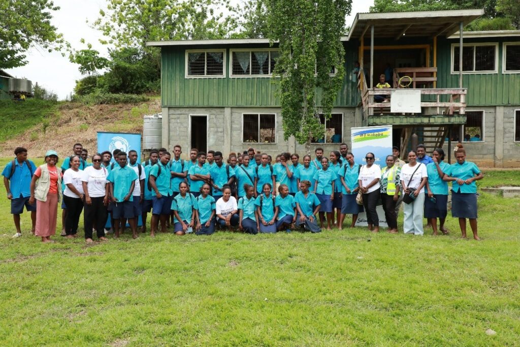 Fig. 1: Students of Betivatu Community High School together with representatives from UNICEF and the Tina River Hydropower Development Project during the International Women’s Day programme held at the school.