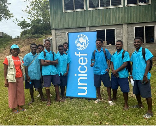 Fig. 2: UNICEF’s Child Protection Officer engages with students during an interactive session at the International Women’s Day programme held at Betivatu Community High School.